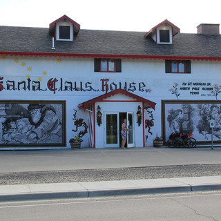 Heel leuk, die beren en die meren, maar het echte hoogtepunt lag nog voor ons: het plaatsje North Pole, waar de kerstman woont, in The Santa Clause House. Je kan daar het hele jaar door kerst vieren, ook in de zomer! De muren zijn bezaaid met brieven van kinderen aan de kerstman, je kunt met enorme pluche ijsberen knuffelen en bij de kerstman op schoot - dat is waar ik de grens trek, overigens. De rest van de groep was iets minder enthousiast maar wilde na enig aandringen toch poseren bij de muurschildering met warme kerstwensen. Kerstkaart voor 2018? Check.
