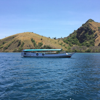 Dezelde avond probeerden we nog een tocht te regelen naar het Komodo Reservaat voor de volgende dag. Dat lukte. Het werd een tocht naar Rinca, het droge eiland. Dit eiland vormt samen met het veel groenere eiland Komodo het Komodo Nationaal Park. We hadden eigenlijk naar Komodo eiland gewild, maar dit werd sterk afgeraden door de meer betrouwbare touraanbieders. Er was teveel wind (wat we bij de landing al hadden gemerkt) waarbij het water te ruig was voor de overtocht. Hoe dan ook de volgende dag stonden we vroeg bij de touroperator. Die stuurde zijn bootsman en zijn assistent samen met onze lunchboxjes op pad naar de boot. We gingen aan boord en wachten op een andere groep waarmee we werden samengevoegd. De tocht kon beginnen en we voeren de baai uit onder de brandende zon.